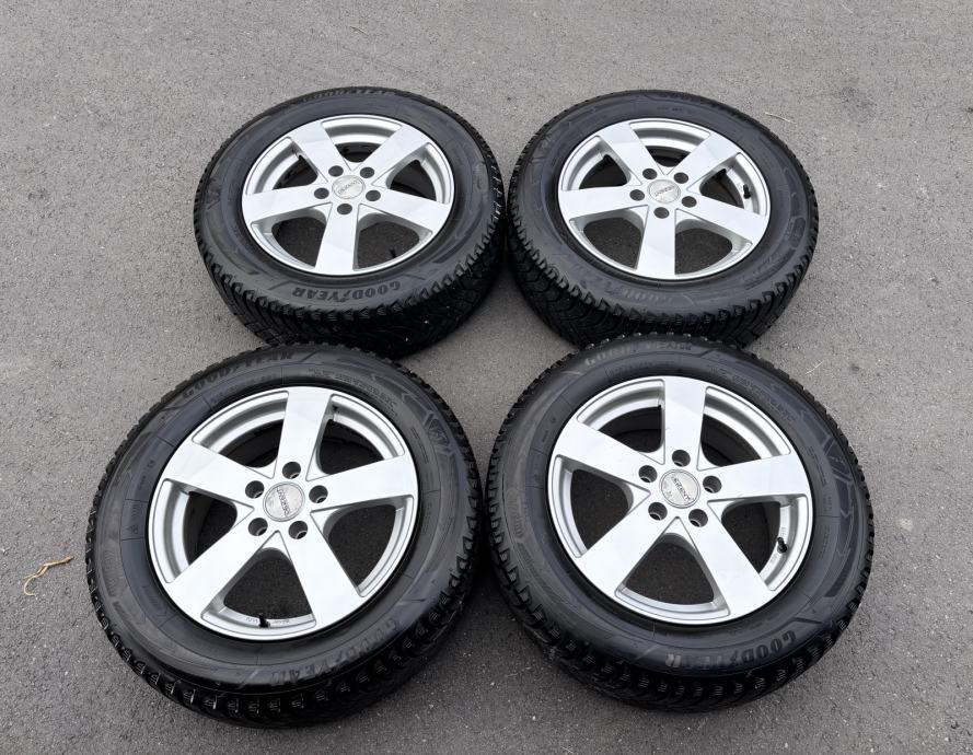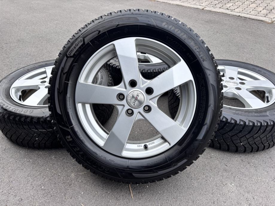 Prodam rabljena alu platišča znamke Denzent,16 col,premer med vijaki 5x112mm,sredinska luknja 57,1mm,ET42,brez poškodb,z zimskimi gumami Goodyear Ultra Grip,dimenzije 215/60-16,dot21,profil 6mm,vožena na Passatu,primerna pa so tudi za Škodo Superb in tudi ostale modele vozil Volkswagen,Seat,Škoda.Cena je za komplet!