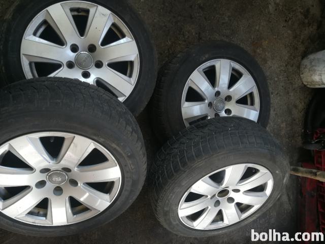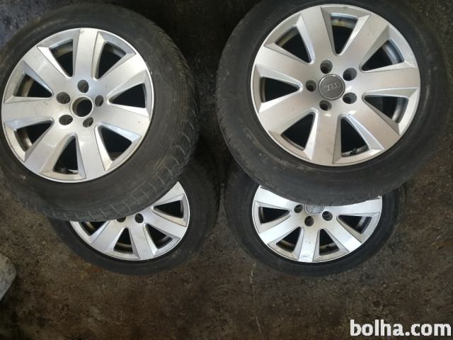 Prodam original aluminijasta platišča za audi 5x112 7,5J ET 45 ki so kompatibilna tudi za seat škoda in volkswagen. Gume so M+S še dobre. Feltne so ravne. Cena je 230eur za vse 4 kom. . Za več info pokličite.Lahko pošljem tudi po pošti. LP