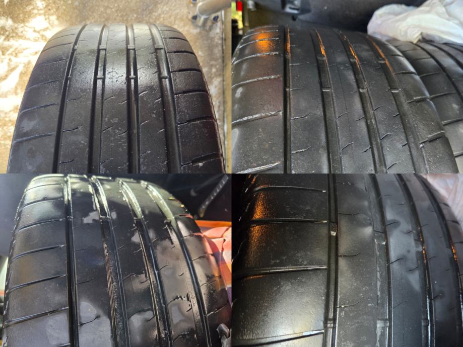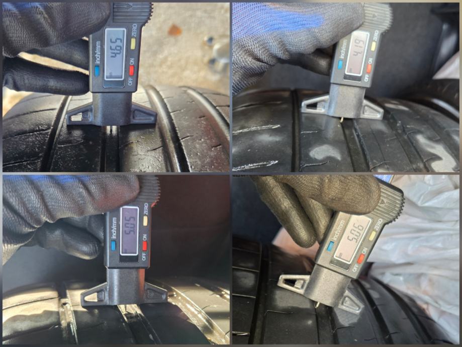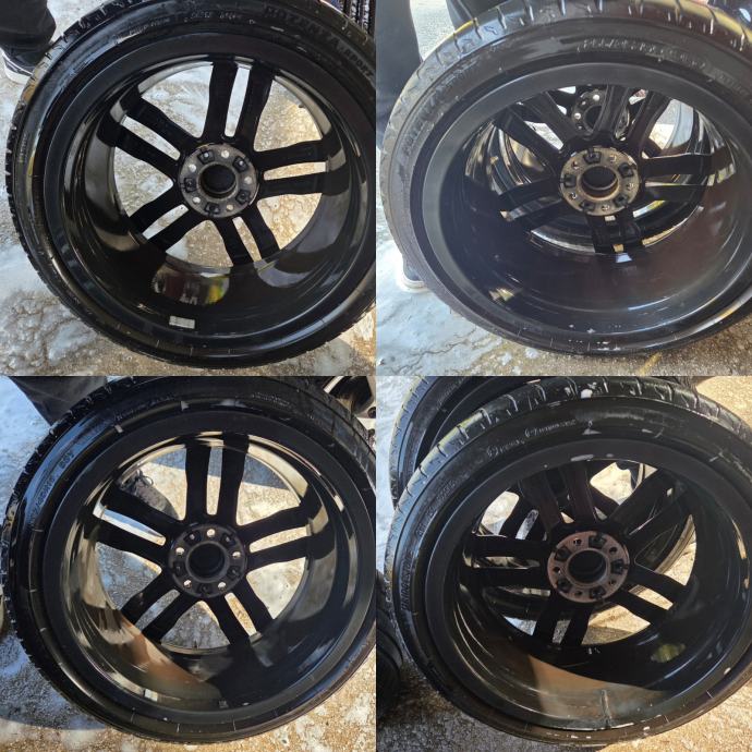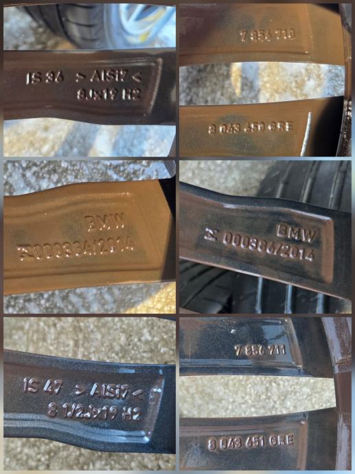 Na slikah je vsako posamezno platišče, kjer se vidi ohranjenost. Zraven so še prednje 225 40 19 letne pnevmatike Bridgestone Potenza Sport DOT 1222 z dobrih 4mm profila, zadnje 255 35 19 enak model in dot pa imajo 5mm . Prodaja se vse v kompletu, gume ne vplivajo na ceno in gredo zraven. Nameščeni so tudi TPMS senzorji tlaka v pnevmatikah.