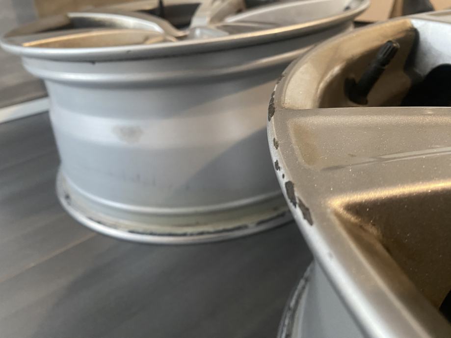 Eno platišče ima poškodovan rob, poškodbe niso globoke, ne vplivajo na vožnjo. So ravne, niso varjene.