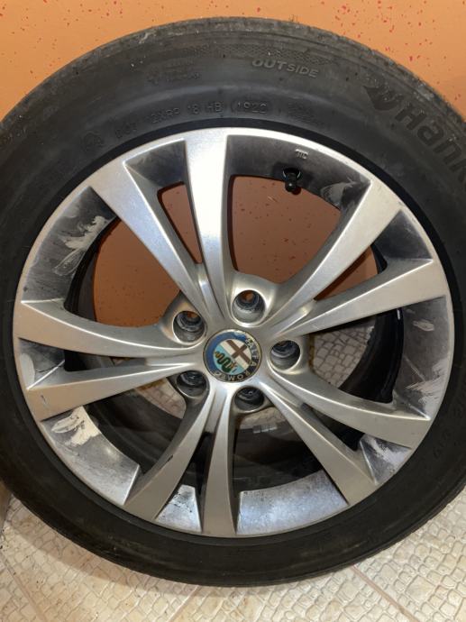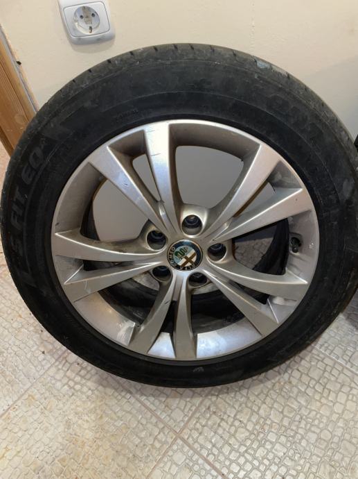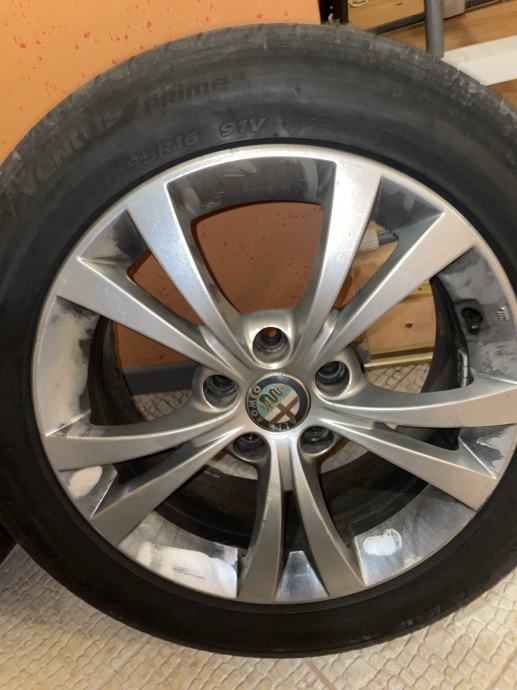 Prodam original Alfa Romeo 16 col platišča in letne gume. Bile so na giulietti. Platišča niso zvita so pa na določenih mestih malo poškodovana kot se vidi iz slik. Gume so 2x Laufenn in 2x Hankook 205/55 16 letnik 22 z cca. 4,5mm profila. Platišča imajo razmak med vijaki 5x110. Prodam tudi brez gum ampak raje vidim da v kompletu. Za ceno se še da kaj dogovorit. Dosegljiv sem na tel.: 031 405 660 v okolici Celja in Maribora. Prodam ker sem zamenjal za večja platišča.