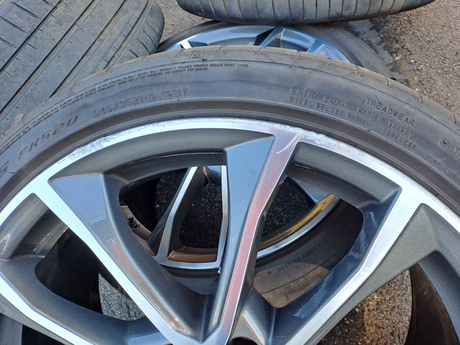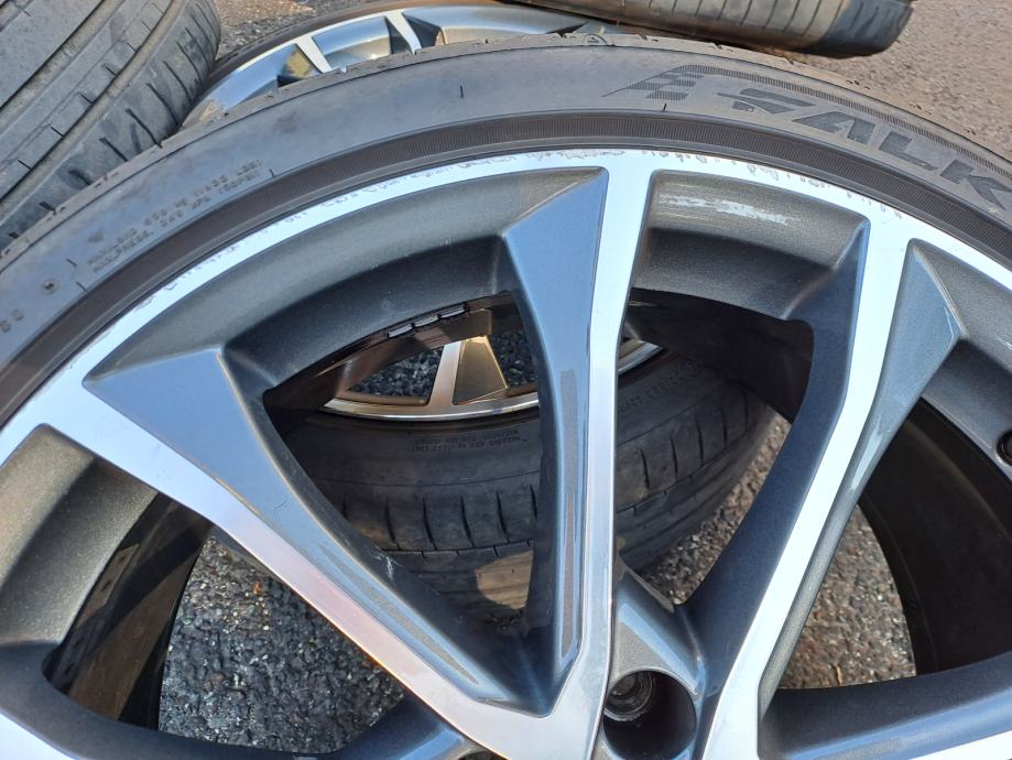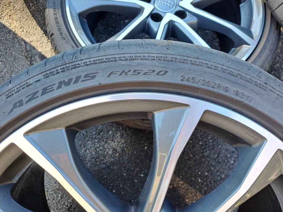 Prodam komplet Audi original platišča S4 (OEM: 8W0 601 025 BF) + pnevmatike FALKEN Azenis FK520 245/35 R19 (DOT 1623), vožene 1 sezono (5 mm profila). Na platiščih so senzorski ventilčki. Dve platišči rahlo popraskani..