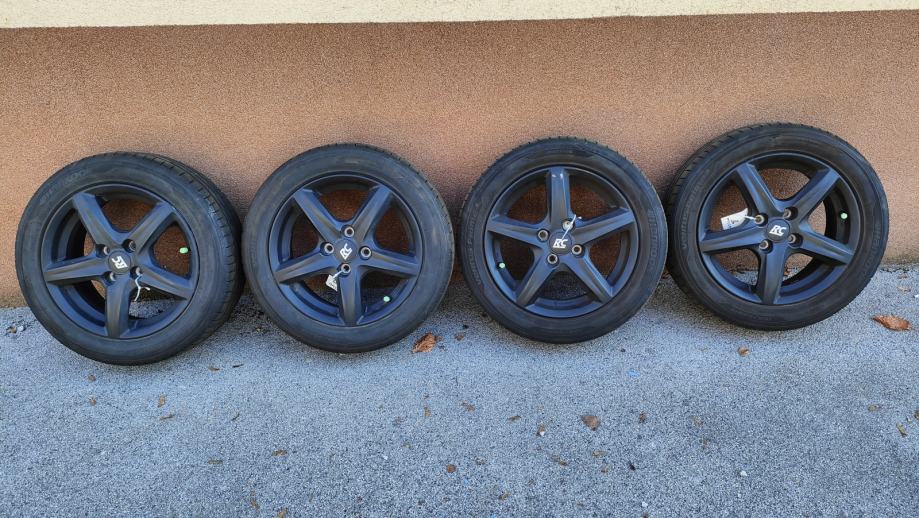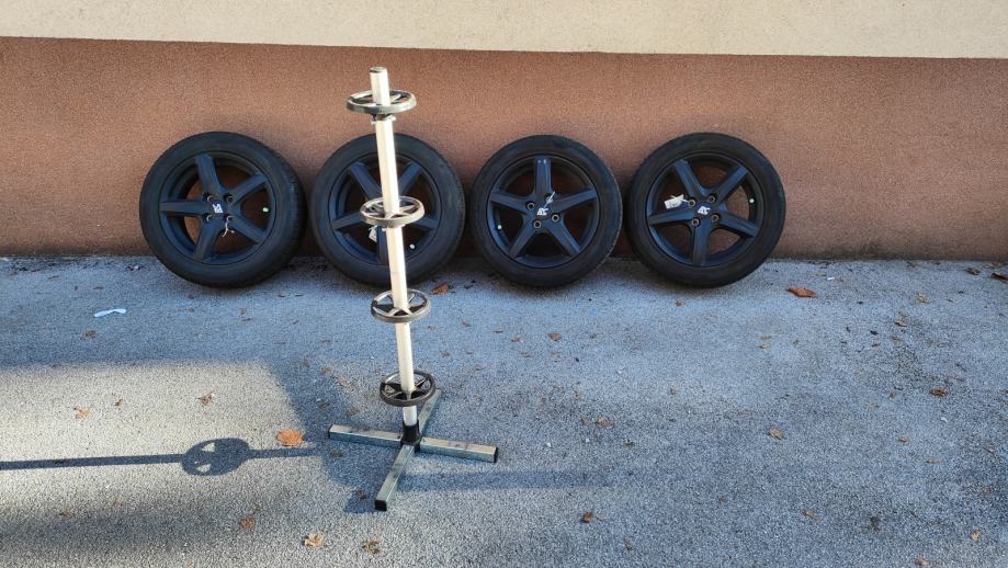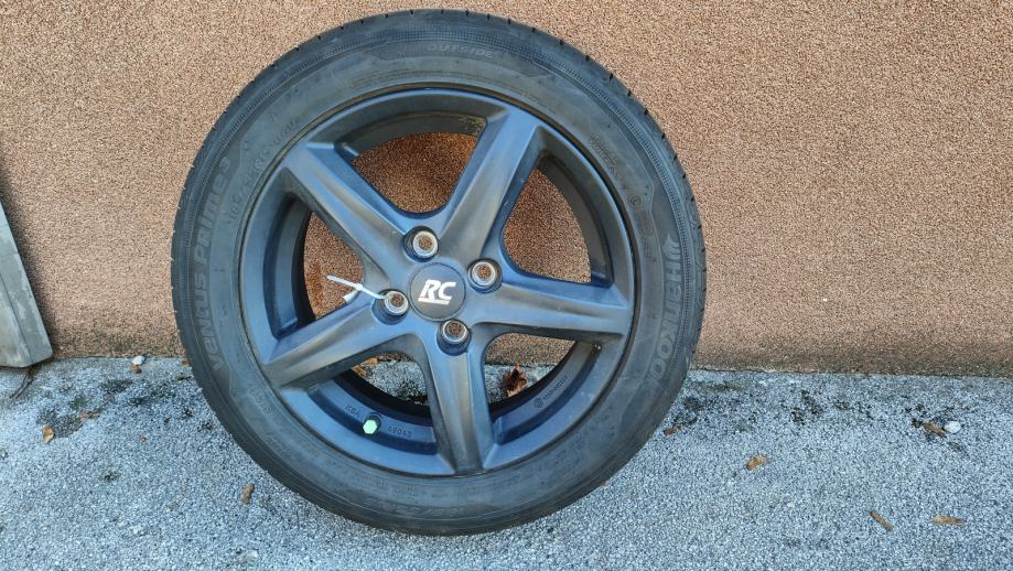 Štiri mat črna alu platišča RC DESIGN z letnimi pnevmatikami HANKOOK VENTUS PRIME 3 dimenzije 185/55 R15 86V in nosilec za pnevmatike.