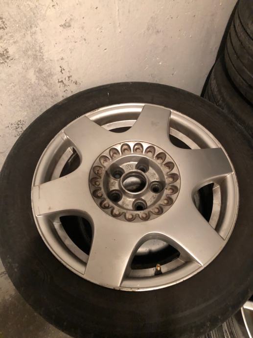 Platišča in zimske gume 205/55-16 za eno sezono. Primerna tudi za ostale vw z razmakom 5x100. Sredinski pokrovi so zraven. Cena za komplet 85e.