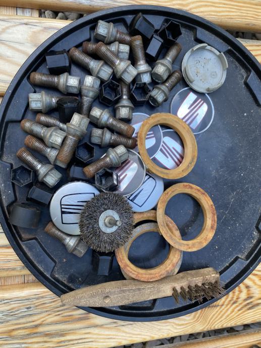 Platišča so odlicno ohranjena, zraven so še vijaki, pokrovčki, distančniki, ter dvigalka za avto, set za popravilo, ostali podatki so na fotografiji platišča. Proizvajalec DEZENT.