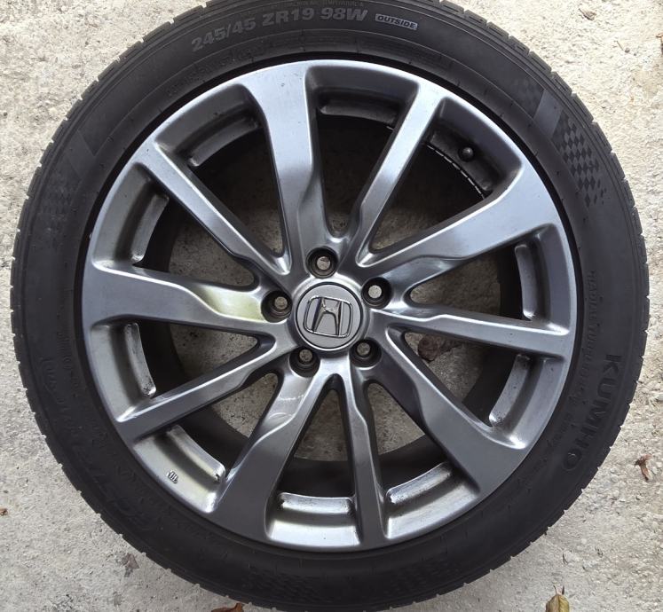 Prodam originalna 19 colska platišča za vozilo Honda. Platišča so v zelo dobrem stanju. Zraven dodam tudi 4 letne pnevmatike znamke Kumho dimenije 245/45/19. Pnevmatike imajo 3-4 mm profila. Cena kompleta je 600€. Kontakt 031344966.