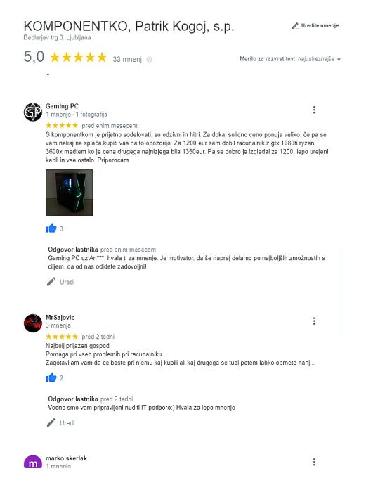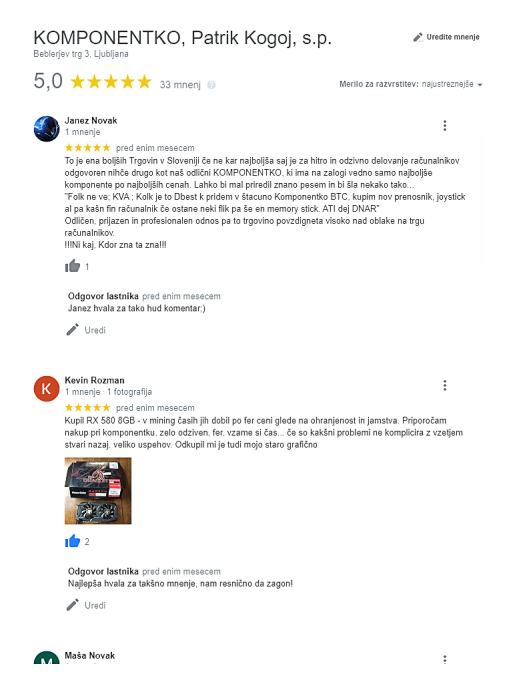 Na Google preverite, kaj si o nas mislijo naše stranke!