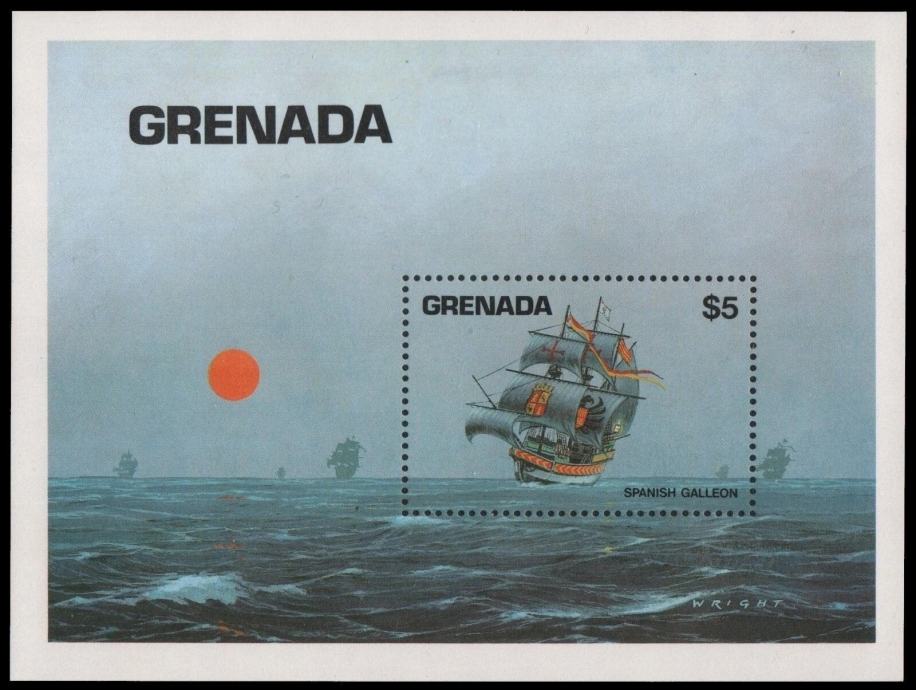 GRENADA 1984 ŠPANSKA GALEJA LADJE ** Mi 1311 (BL 128) ** blok (9)