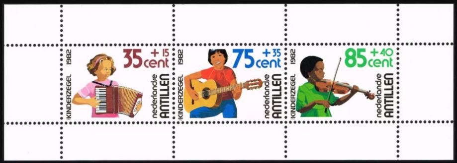NIZOZEMSKI ANTILI 1982 GLASBA GLASBILA ** Mi 481/483 (BL 22) blok (7)
