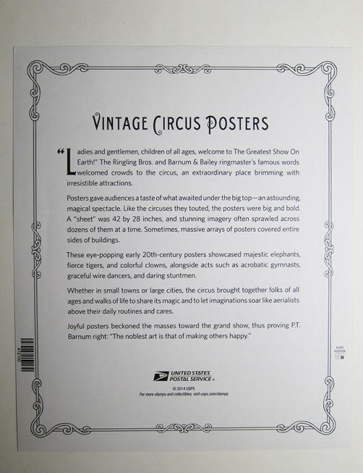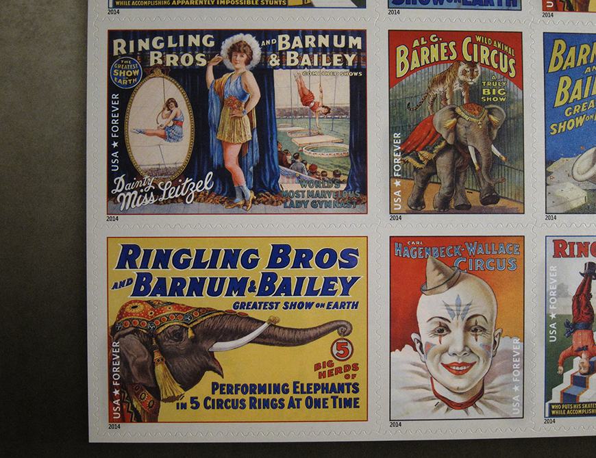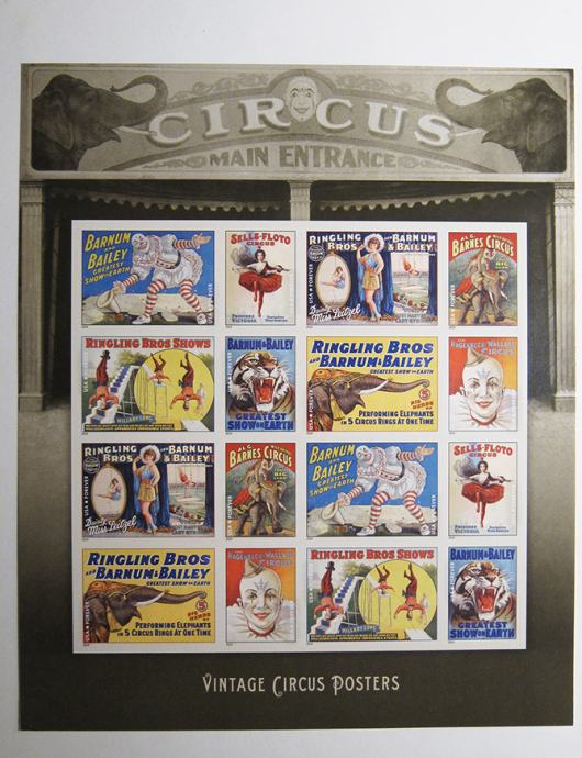 PRODAM TEMATSKO POLO/ SAMOLEPILNE ZNAMKE CIRKUS VINTAGE 2014 U.S.POST