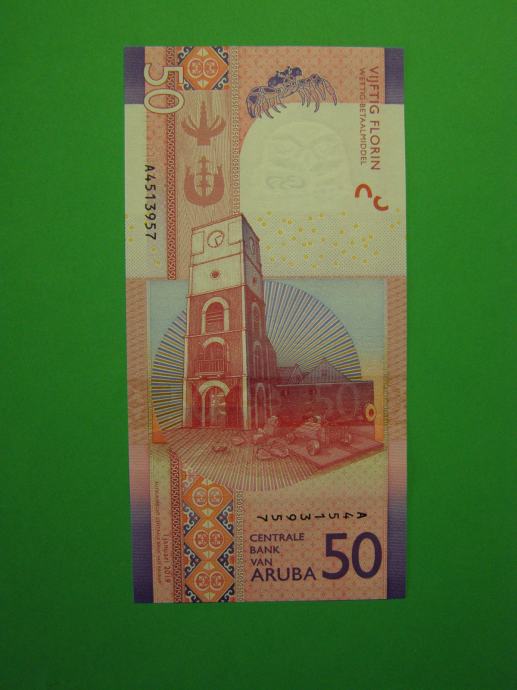 Prodam bankovec za 50 Florinov iz Arube (50 AFL), kot ga lahko vidite na fotografijah. Bankovec je povsem nov - UNC kvalitete.