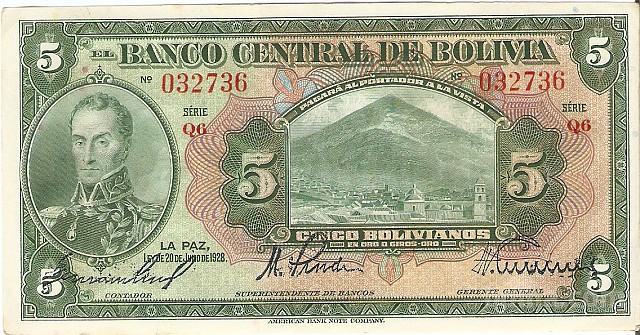 Prodam bankovec 5 BOLIVANOS P-120a.7-1 (BOLIVIJA) 1928, aUNC - KVALITETA. CENA JE ZA 1 BANKOVEC.