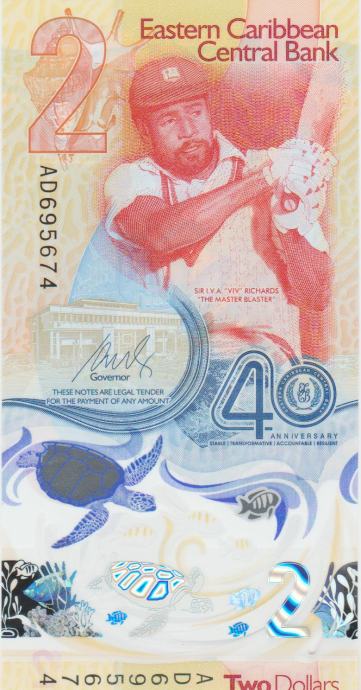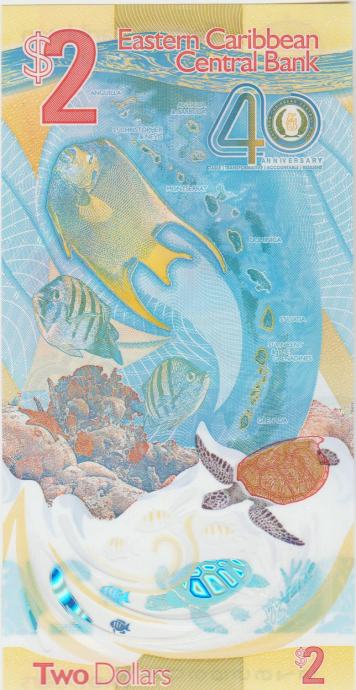 BANK.SPOMINSKI 2 DOLLARS P61a 40 let (VZHODNE KARIBSKE DEŽELE)2023.UNC