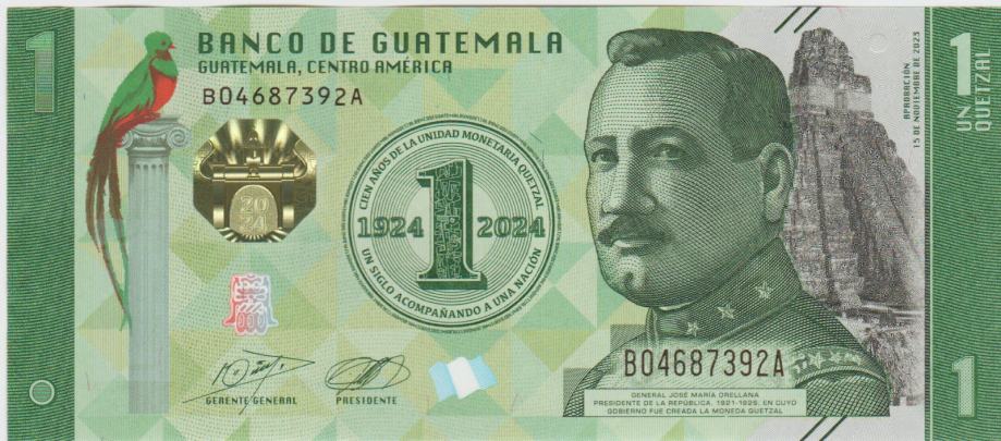 Prodam PRILOŽNOSTNI BANKOVEC 1 QUETZALES P129 100.obletnica valute Quetzal -1924–2024 ( GVATEMALA GUATEMALA) 2023.UNC kvaliteta.