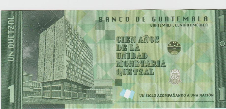 BANKOVEC 1 QUETZALES P129 100 LET VALUTE (GVATEMALA GUATEMALA)2023.UNC