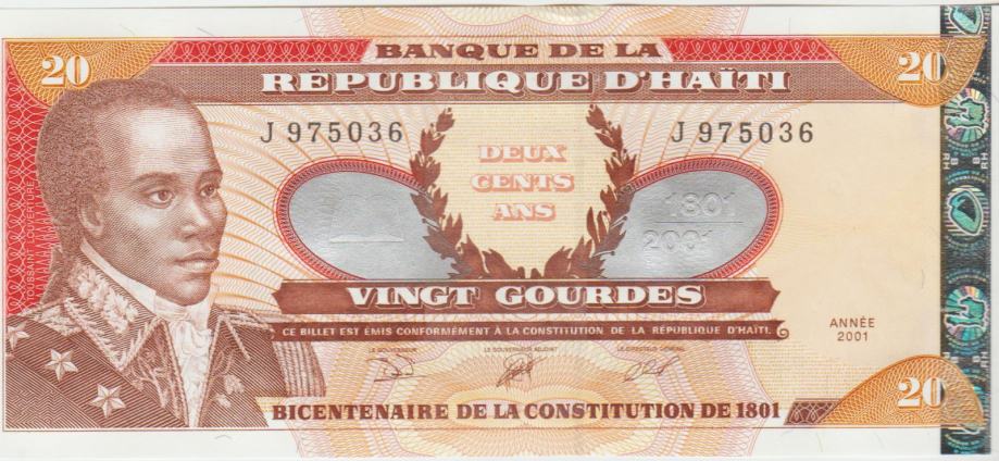 Prodam PRILOŽNOSTNI BANKOVEC 20 GOURDES P271 "200 let ustave" (HAITI) 2001.UNC kvalitete.