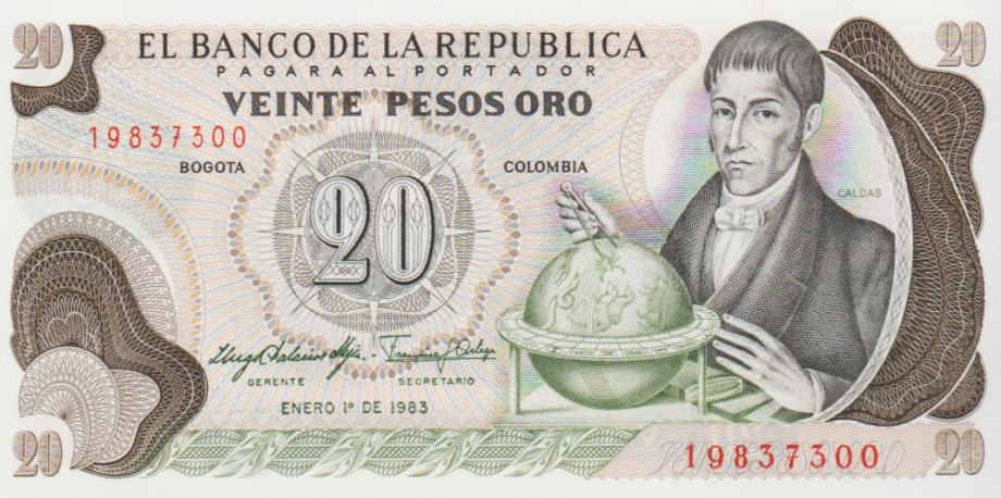 Prodam bankovec 20 PESOS P409d (KOLUMBIJA) 1983.UNC kvaliteta.