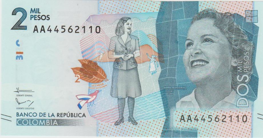Prodam bankovec ŠE 2.000 PESOS P-458a-2015 IN 2.000 PESOS P-458f-2020 (KOLUMBIJA) UNC kvaliteta. CENA JE ZA 1 BANKOVEC.