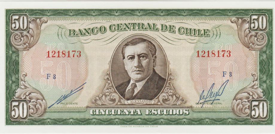 Prodam bankovec 50 ESCUDOS P140b.2 ser.F (ČILE) 1973.UNC kvalitete.