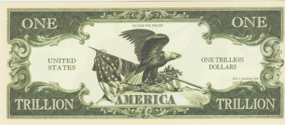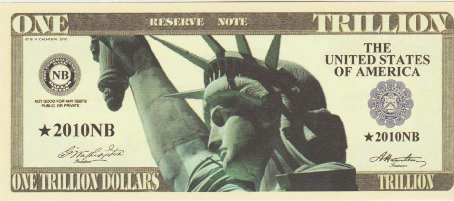 Prodam fantazijski bankovec privatna izdaja 1 TRILION-2010 DOLAR "KIP SVOBODE" (ZDA AMERIKA) UNC. KVALITETA.