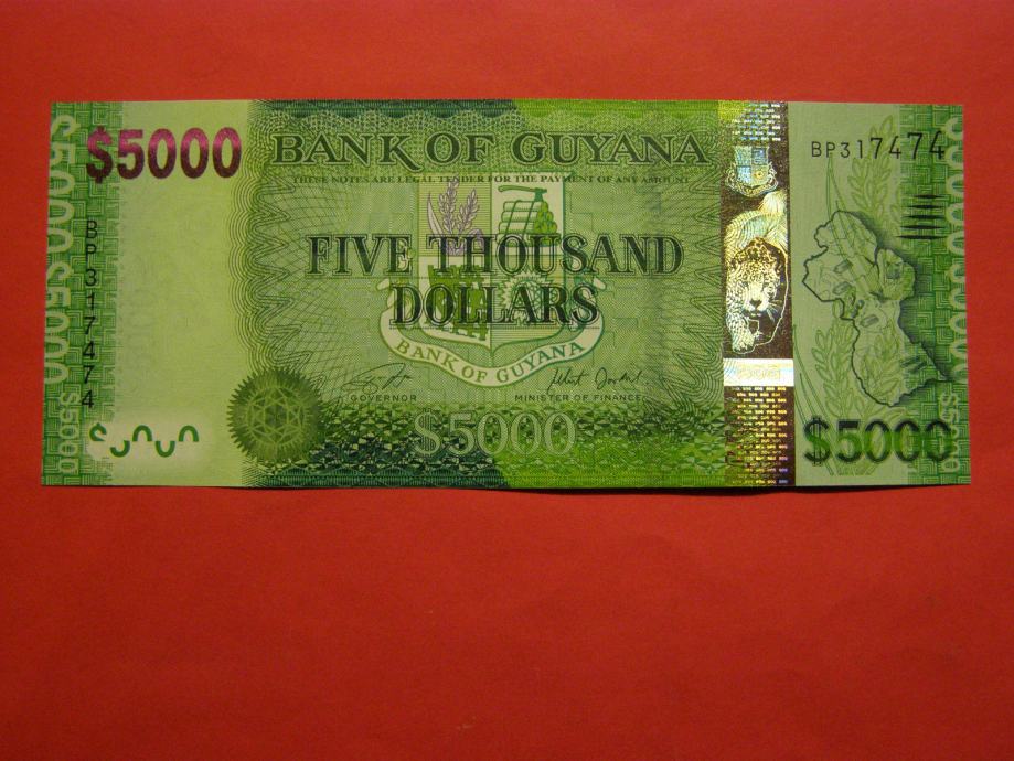 Prodam bankovec za 5.000 Dolarjev iz Guyane (5000 GYD) kot ga lahko vidite na fotografijah in je povsem nov - UNC kvalitete.