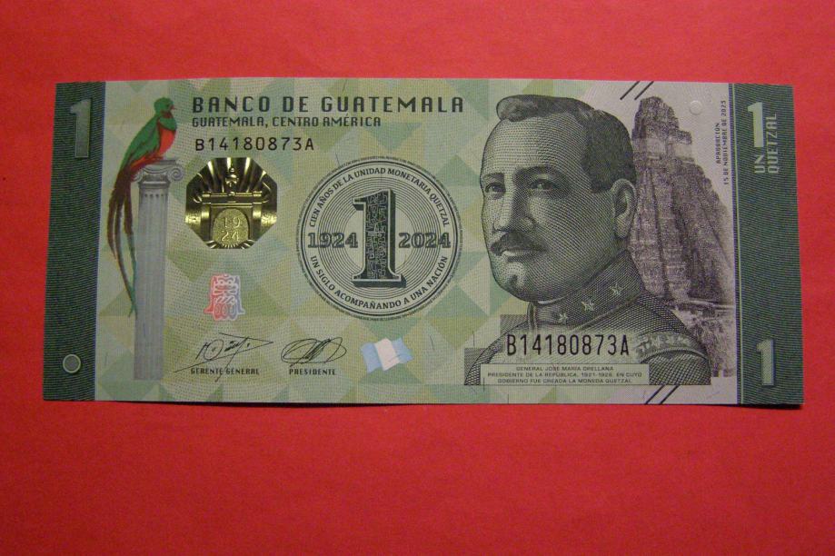 Prodam PRILOŽNOSTNI bankovec za 1 Quetzal iz Gvatemale (1 GTQ), kot ga lahko vidite na fotografijah in je nov - UNC kvalitete.