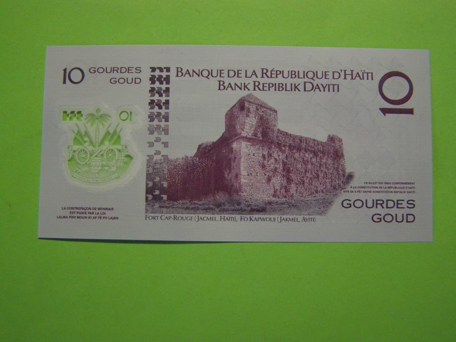 Prodam POLIMERNI bankovec za 10 Gourdov iz Haitija (10 HTG), kot ga lahko vidite na fotografijah in je povsem nov - UNC kvalitete.