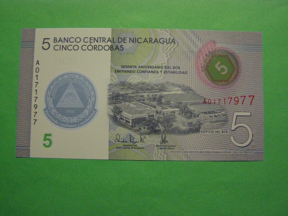 Prodam POLIMERNI in PRILOŽNOSTNI bankovec za 5 Cordobas (5 NIO) iz Nikaragve, kot ga lahko vidite na fotografijah. Bankovec je povsem nov - UNC kvalitete.