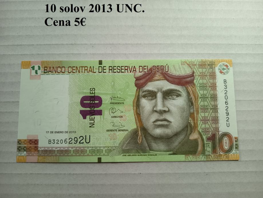 Prodam bankovec za 10 solov 2013. Na zadnji strani je upodbljen Machu Picchu.