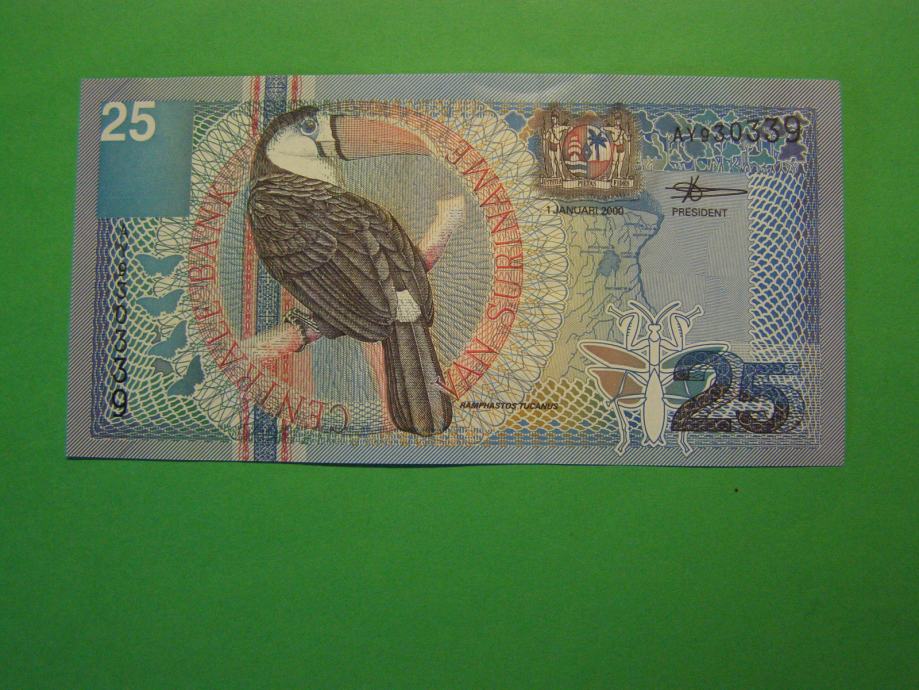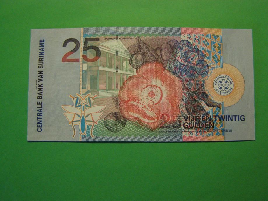 Prodam bankovec za 25 Guldnov iz Surinama, kot ga lahko vidite na fotografijah in je povsem nov - UNC kvalitete.