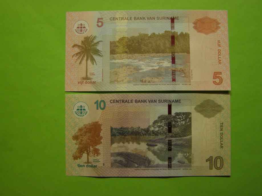 Prodam bankovca za 5 in 10 Dolarjev iz Surinama (5,10 SRD), kot ju lahko vidite na fotografijah in sta povsem nova - UNC kvalitete.