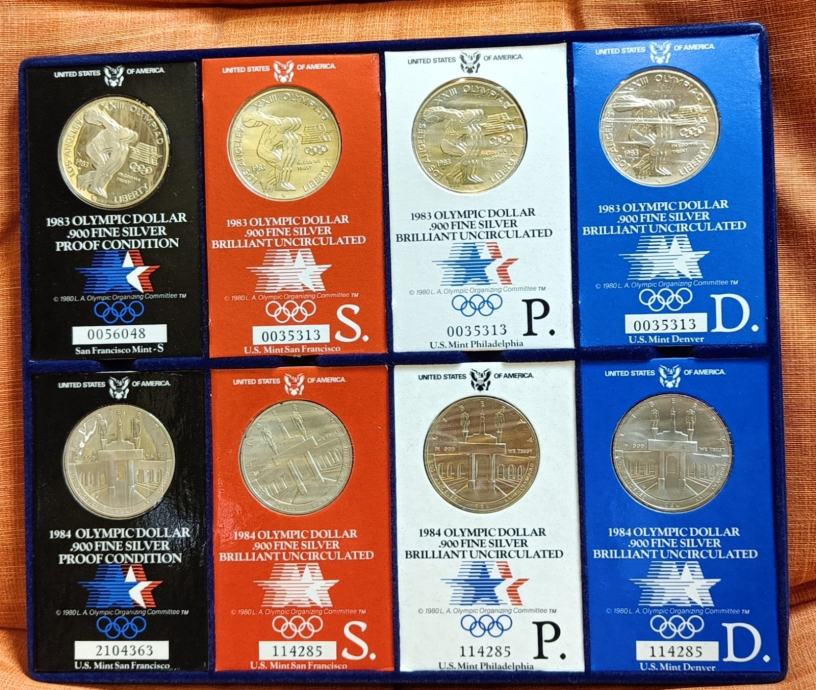 8x 1 DOLLAR 1983 SREBRO:26.7g/0.900