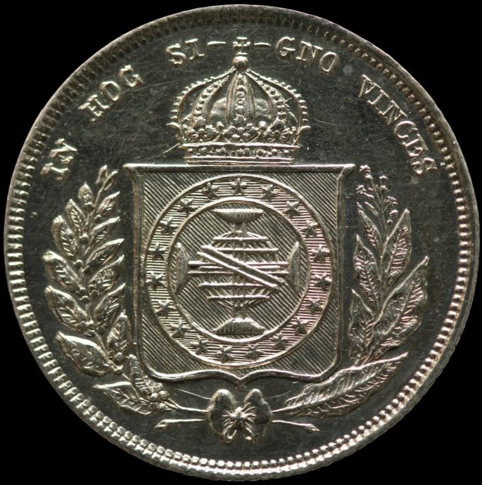 LaZooRo: Brazil 200 Reis 1867 PROOF zelo redek - Srebro
