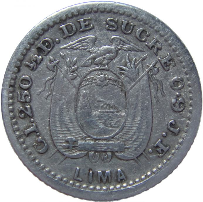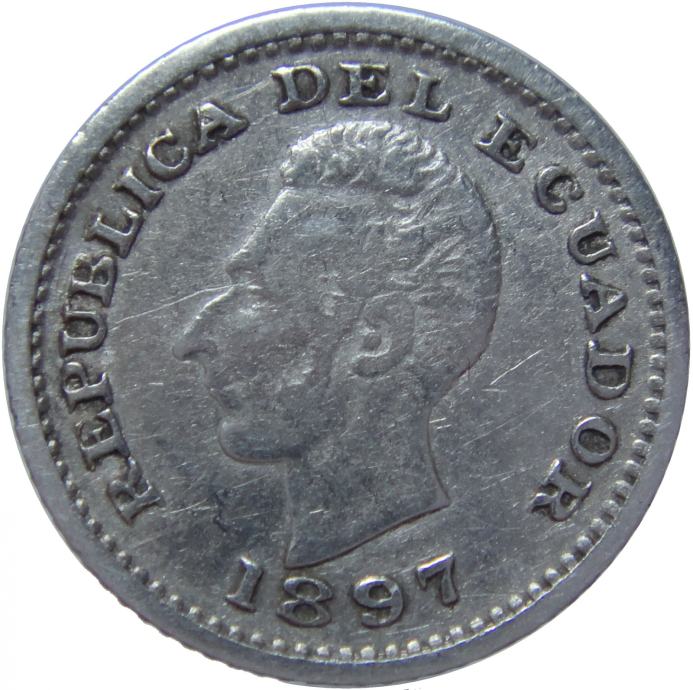 LaZooRo: Ekvador 1/2 Decimo 1897 XF D prek E napake - Srebro