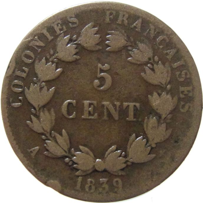 LaZooRo: Francoske kolonije 5 Centimes 1839 A VF