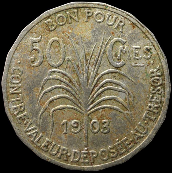LaZooRo: Guadeloupe 50 Centimes 1903 VF / XF