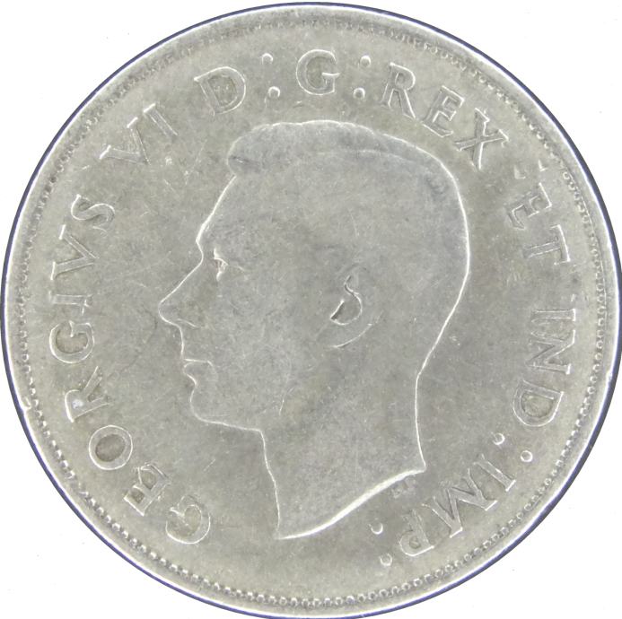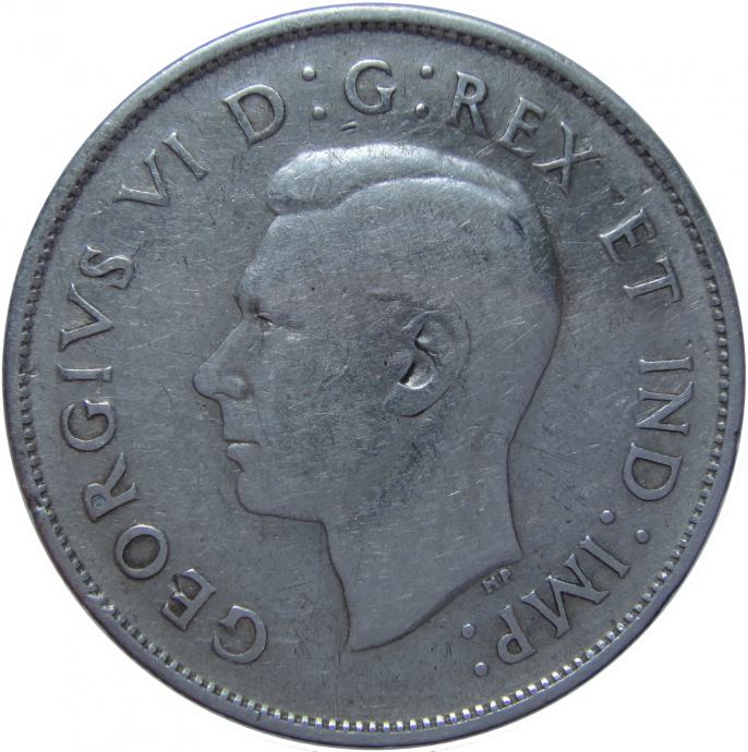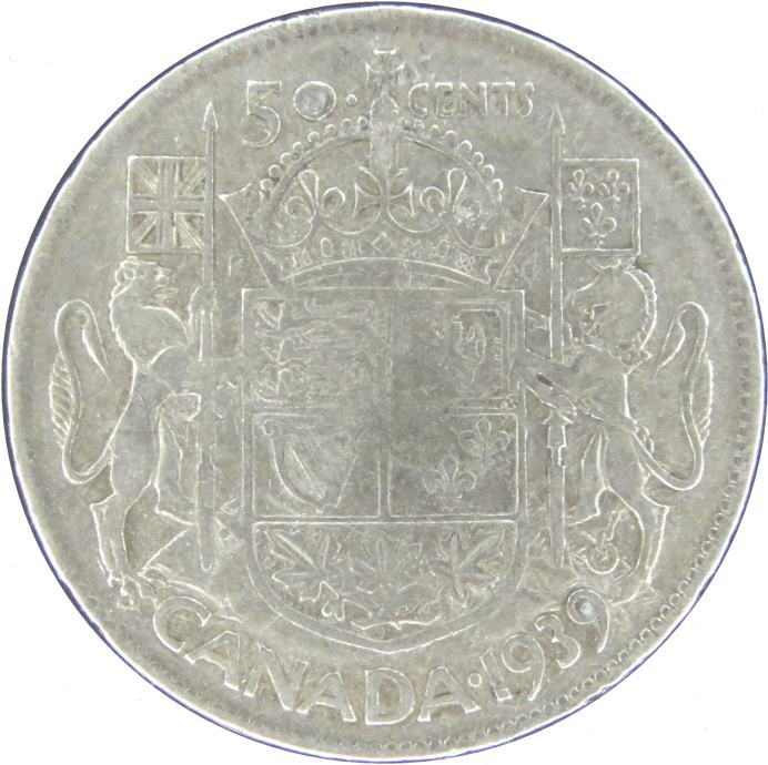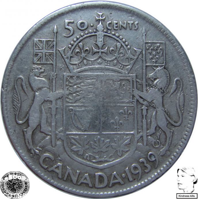 LaZooRo: Kanada 1/2 Dollar 50 Cents 1939 VF - Srebro