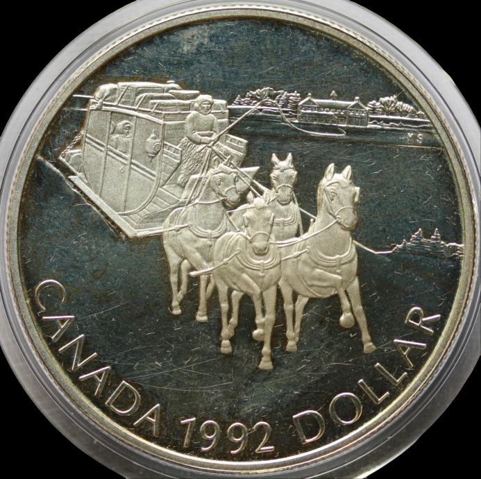 LaZooRo: Kanada 1 Dollar 1992 PROOF kočija - Srebro
