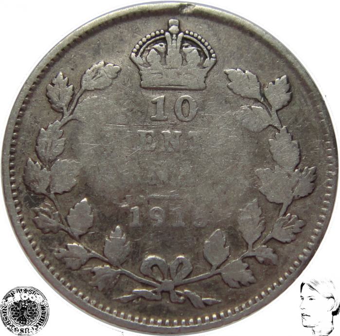 LaZooRo: Kanada 10 Cents 1915 F - Srebro