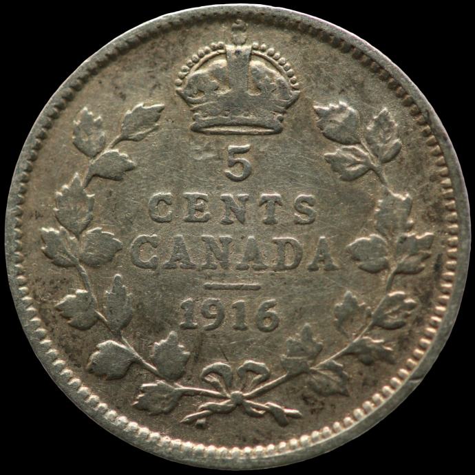 LaZooRo: Kanada 5 Cents 1916 VF - srebro