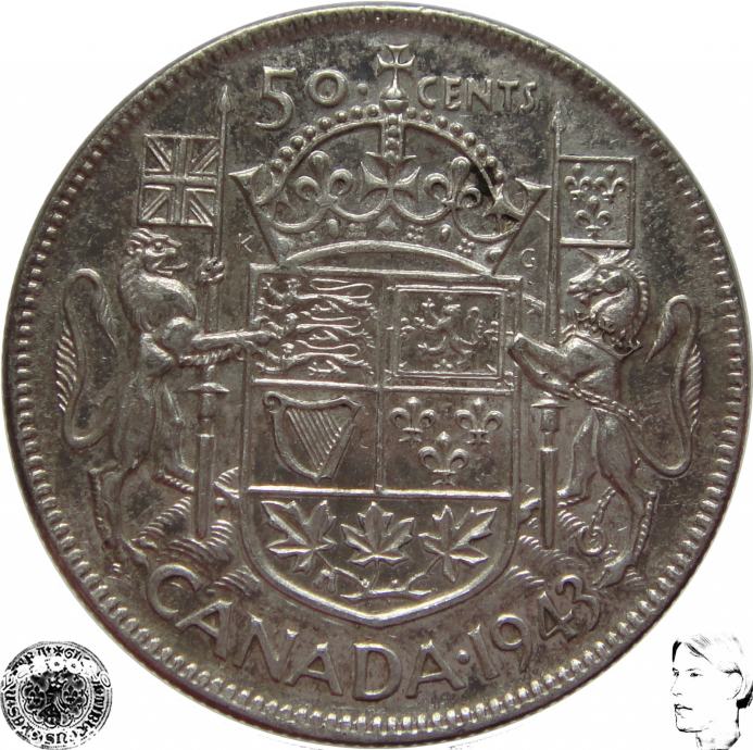 LaZooRo: Kanada 50 Cents 1943 XF - Srebro