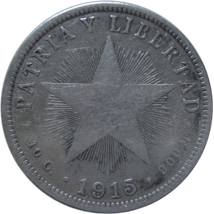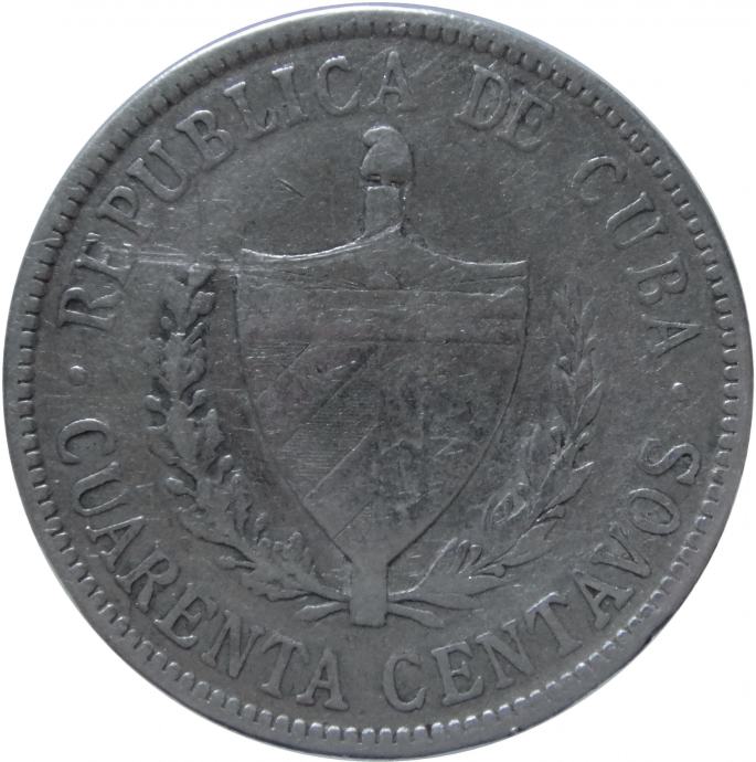 LaZooRo: Kuba 40 Centavos 1915 VF - Srebro