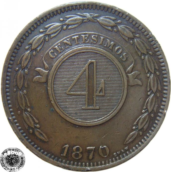 LaZooRo: Paragvaj 4 Centesimos 1870 XF