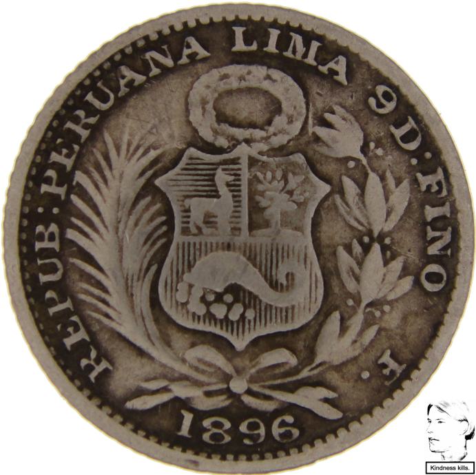 LaZooRo: Peru 1 Dinero 1896 F XF - srebro