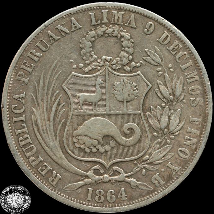 LaZooRo: Peru 1 Sol 1864/54 VF – srebro