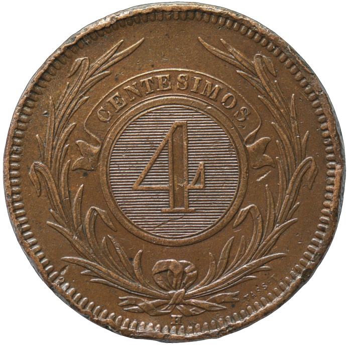LaZooRo: Urugvaj 4 Centesimos 1869 H VF