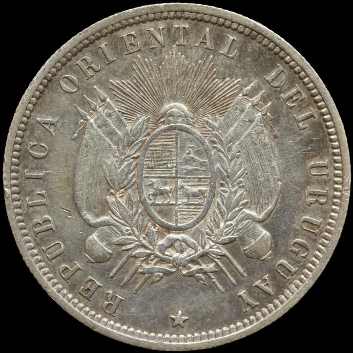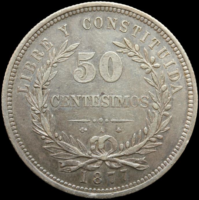 LaZooRo: Urugvaj 50 Centesimos 1877 XF/UNC - Srebro