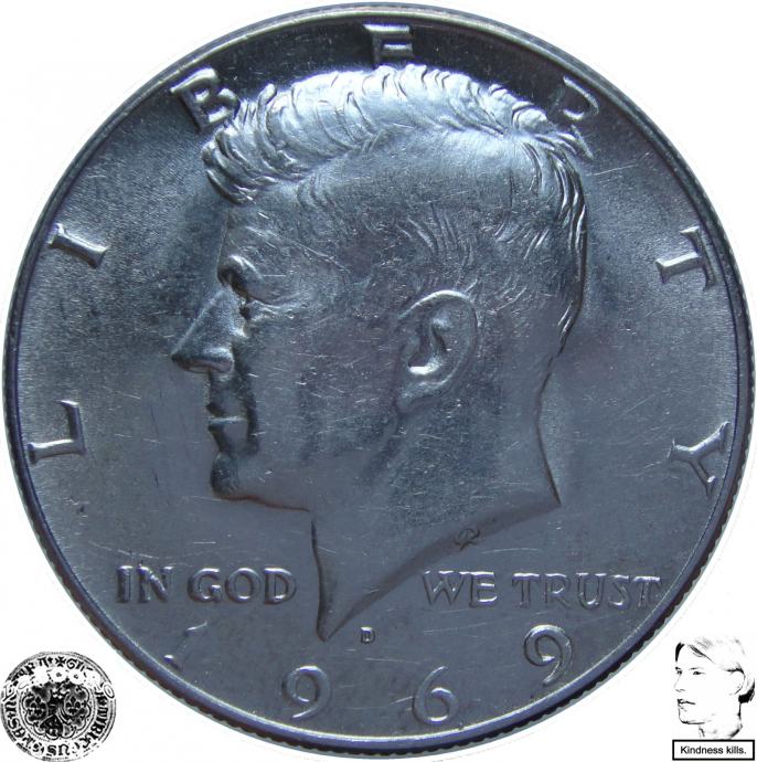 LaZooRo: Združene Države Amerike 1/2 Dollar 1969 D UNC DDR - Srebro