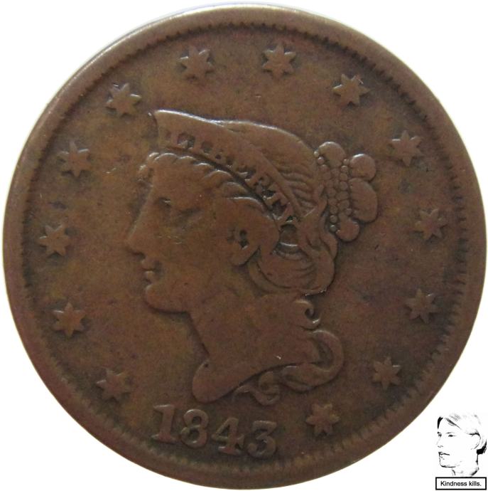 LaZooRo: Združene Države Amerike 1 Cent 1843 VF/XF