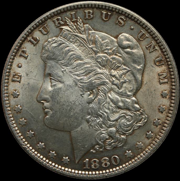 LaZooRo: Združene države Amerike 1 Morgan Dollar 1880 UNC - Srebro